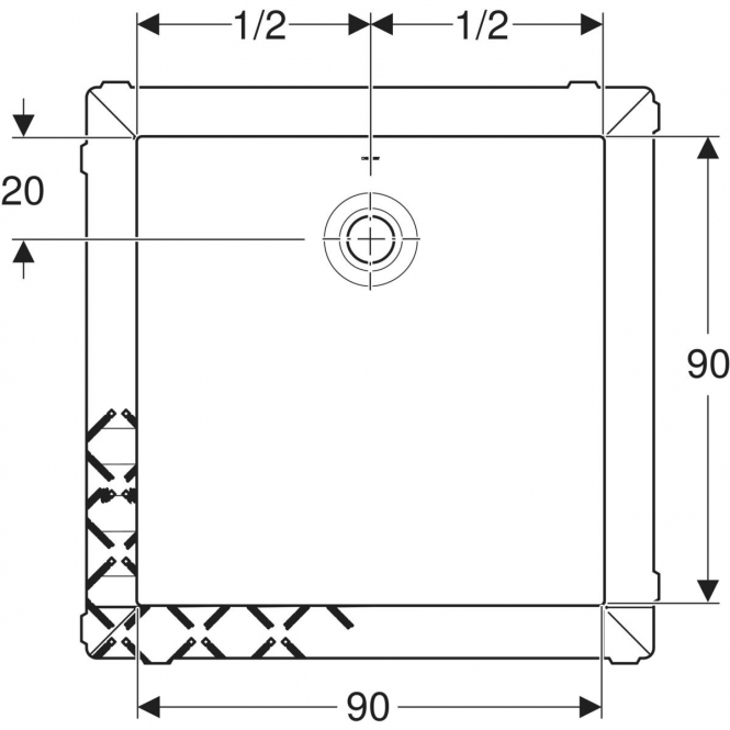 Dušo padėklas Geberit Olona 90x90 cm su sifono dangteliu