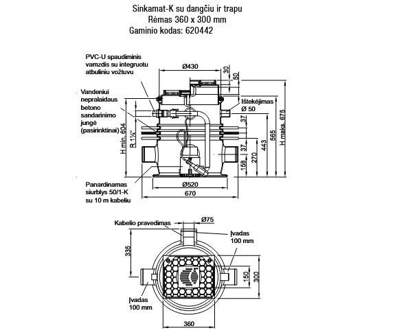 Įrenginys nuotekų pakėlimo Sinkamat-K su dangčiu įvairiems paviršiams