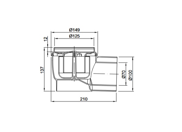 Korpusas trapo Easy Flow horizontalus Dn100