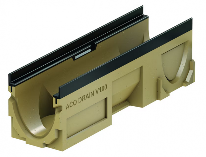 Latakas V100G su išmušamu vamzdžio prijungimo ruošiniu Dn110, ketaus briauna H-200mm