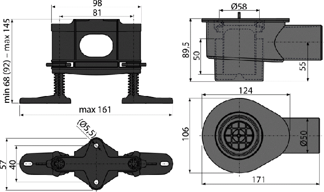 Sifonas standartinis latakui APZ13 su kojelėmis latakui