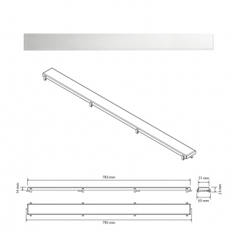 Dušo latako grotelės Bemeta 800 mm, nerūdijančio plieno