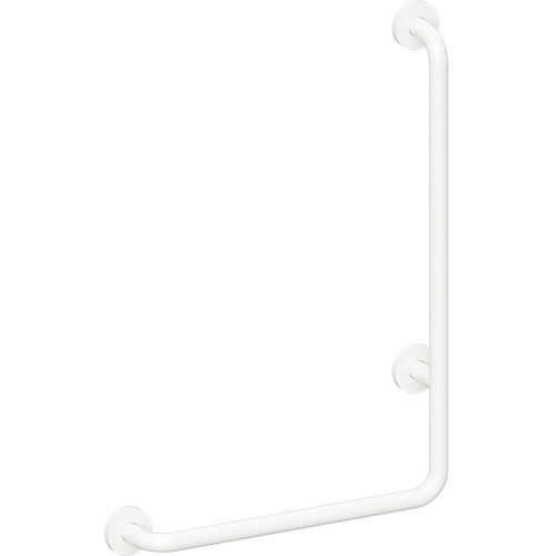 Kampinė rankena Bemeta Help 90 ° kampu, 890 mm, dešininės pusės, su tvirtinimo apdaila, balta