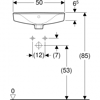 Praustuvas Ifö Spira Square, 50x31 cm, su skyle maišytuvui dešinėje pusėje