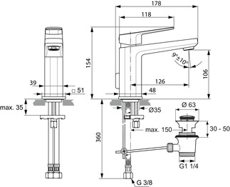 Praustuvo maišytuvas Ideal Standard Tonic II,su dugno vožtuvu