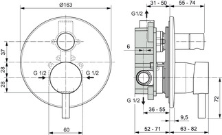 Vonios/dušo maišytuvas Ceraline, potinkinis,(Kit1+Kit2)