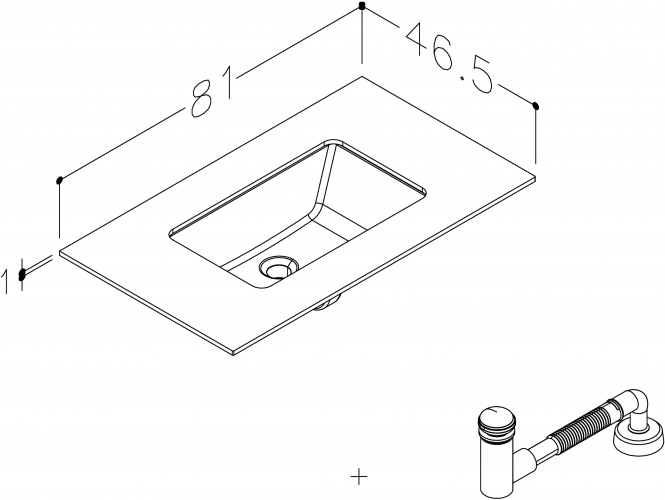 Stalviršis 80cm HPL su praustuvu iš apačios juoda lava
