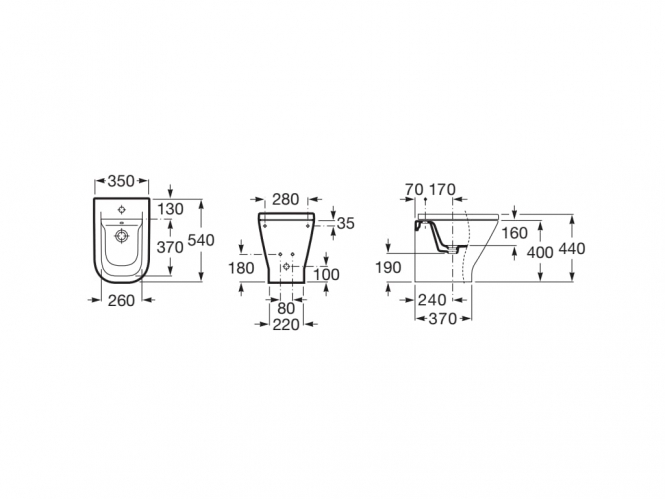 Bidė Roca THE GAP SQUARE, pastatoma, kompaktiška, 1 anga maišytuvui viduryje