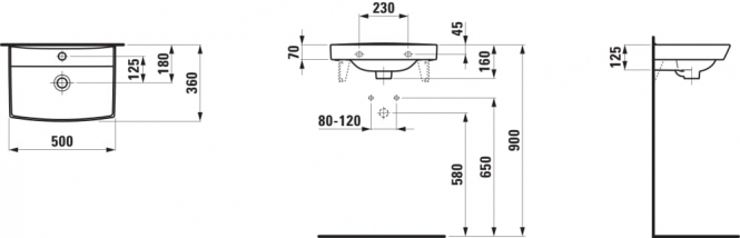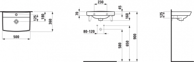 Praustuvas Laufen PRO N 500x360x70 mm, su 1 anga maišytuvui viduryje, spalva - balta LCC (LAUFEN Clean Coat)