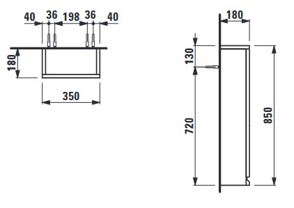 Pusaukštė spintelė Laufen PRO S 350x180x850 mm, 1 durelės, lankstai dešinėje, spalva - balta blizgi