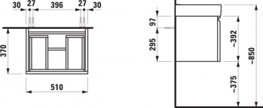 Spintelė praustuvui Laufen PRO S 510x370x390 mm, 2 stalčiai (išorinis ir vidinis), tinka praustuvui 818958, spalva - balta blizgi