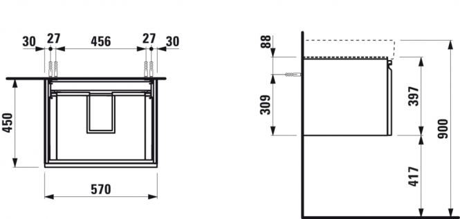 Spintelė praustuvui Laufen PRO S 570x450x390 mm, 2 stalčiai (išorinis ir vidinis), tinka praustuvui 810963, spalva - balta
