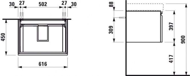 Spintelė praustuvui Laufen PRO S 615x450x395 mm, 1 stalčius, tinka praustuvui 810964, spalva - balta