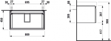 Spintelė praustuvui Laufen PRO S 810x450x390 mm, 1 stalčius, tinka praustuvui 813965, spalva - grafito