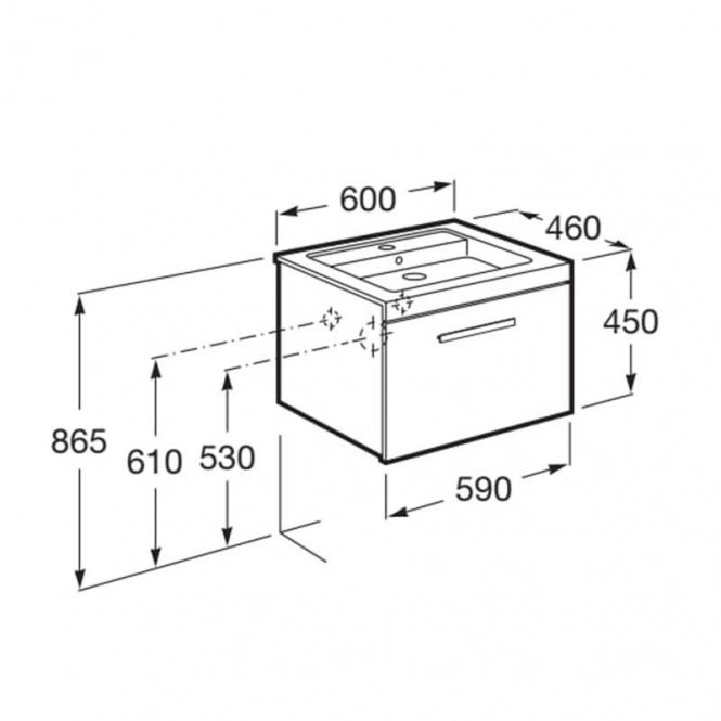 Spintelė praustuvui Roca PRISMA 600x460x450 mm, 1 stalčius, spalva - balta blizgi