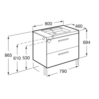 Spintelė praustuvui Roca PRISMA 800x460x694 mm, 2 stalčiai, spalva - balta/uosis