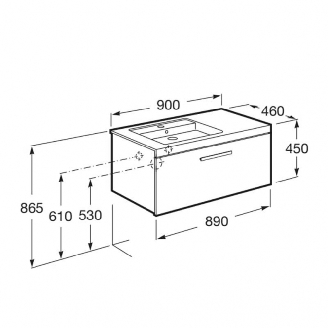 Spintelė praustuvui Roca PRISMA 900x460x450 mm, 1 stalčius, spalva - balta blizgi