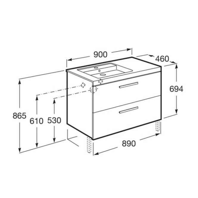 Spintelė praustuvui Roca PRISMA 900x460x694 mm, 2 stalčiai, spalva - balta blizgi