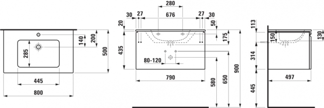 Spintelė su praustuvu Laufen PRO S 800x500x460 mm, 1 stalčius, spintelės spalva - šviesus ąžuolas