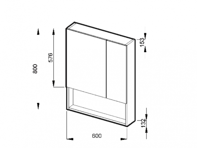 Veidrodinė spintelė Jika LYRA 600x132x800 mm, 2 durelės, su atvira lentynėle, spalva - balta