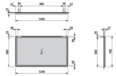 Veidrodis Laufen FRAME 25, 1200x25x700 mm, su aliuminio rėmu, be apšvietimo