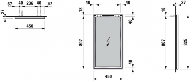 Veidrodis Laufen FRAME 25, 450x25x825 mm, su juodos matinės spalvos aliuminio rėmu, be apšvietimo