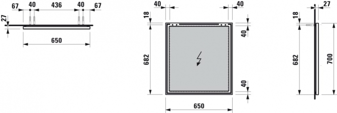 Veidrodis Laufen FRAME 25, 650x25x700 mm, su aliuminio rėmu, be apšvietimo