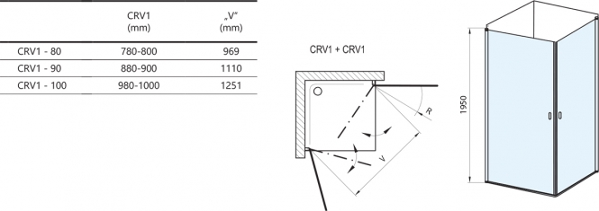 Dušo durys Ravak Chrome CRV1-100, juodu profiliu, skaidriu stiklu