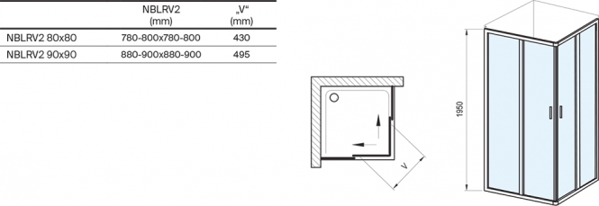 Dušo kabina Ravak Blix II NBLRV2-90 juodu profiliu, skaidriu stiklu