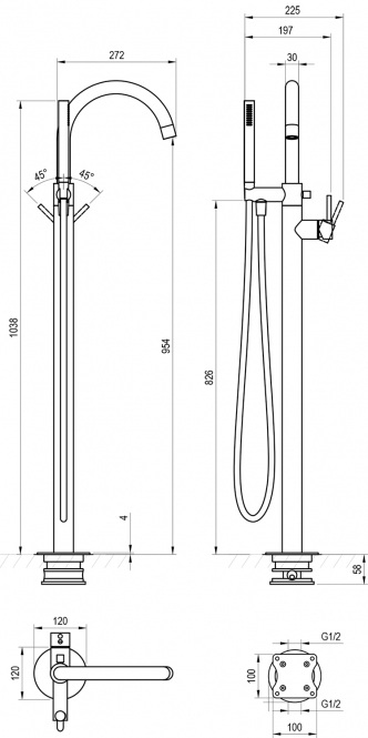 Grindinis vonios maišytuvas Ravak Espirit ES 080.60, Rose Gold Brushed