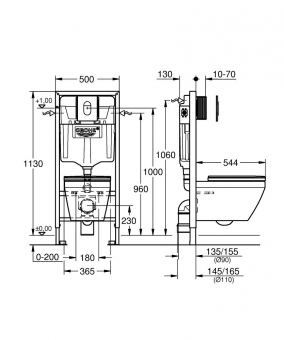 GROHE (5in1) potinkinio WC rėmo Rapid SL su chromuotu Arena Cosmopolitan mygtuku ir unitazo Euro Triple Vortex komplektas