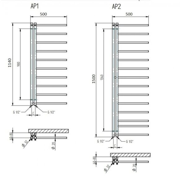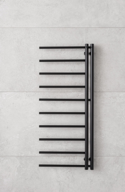 Rankšluosčių džiovintuvas P.M.H. Apollo 500x1140 matinė juoda spalva RAL9005 kairės pusės
