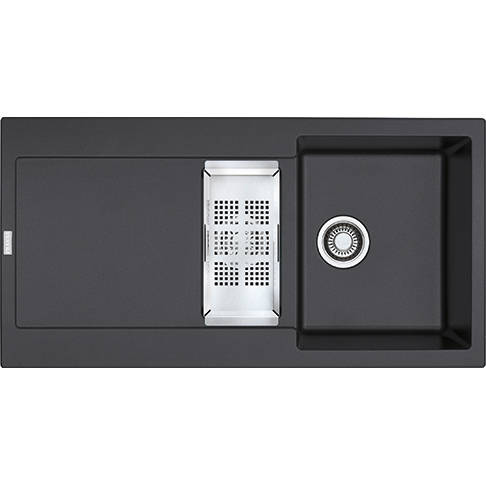 Fragranito plautuvė Franke MARIS MRG651 su ekscentriniu ventiliu ir nuvarvėjimo indu, spalva - onikso juoda